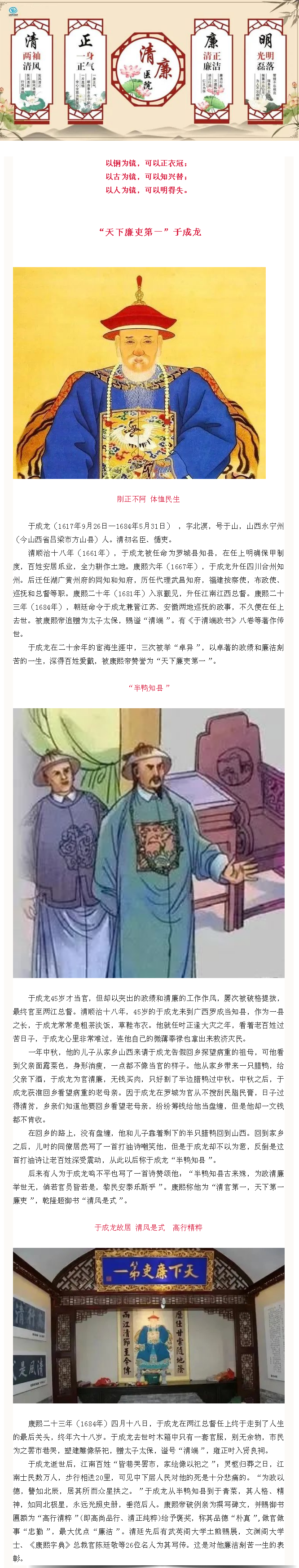 清廉医院微课堂16|清廉故事之——“天下廉吏第一”于成龙