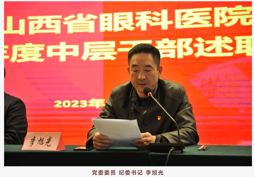分管院领导对七位代表的述职逐一进行了点评,充分肯定了大家在过去的一年中的辛勤付出,同时也表达了对下一步工作的殷切期望。 述职结束后,与会者对全体中层干部进行测评。 党委书记孙斌代表院党委对述职情况进行总结。他表示中层干部述职测评是省卫健委年度工作考核的重要要求,是加强我院中层干部管理,推动医院各项工作有序开展的重要举措。既是一次工作总结会,也是工作交流会,既是对各部门的考核,也是对我院重点工作的检查。他强调, 本次中层干部年终考核述职,是医院进一步改进医疗质量,提高科室负责人业务管理、行政管理、运营管理、目标管理能力的举措,是对干部能力作风的大检阅,也是管理经验的大交流。他希望全体中层干部要进一步提高政治站位,增强履职责任感,加强作风建设,强化责任意识、危机意识,谋划好临床、医技、行政管理等各项工作,创新落实新时代党的卫生健康工作方针,为推进医院高质量发展作出自己应有的贡献! 纪委书记李旭光在总结讲话中表示,2023年是全面贯彻落实党的二十大精神的开局之年,也是我院建设和发展的关键之年。站在新的起点上,要以启动就是启跑,开干就是攻坚的斗志,坚持不懈的用习近平新时代中国特色社会主义思想凝心铸魂,认真学习、宣传、贯彻党的二十大精神,按照省卫健委和院党委工作部署,紧紧围绕“医院高质量发展”这个目标,踔厉奋发,笃行不怠,在真抓实干中创新路、破险阻、开新局、谋新篇!